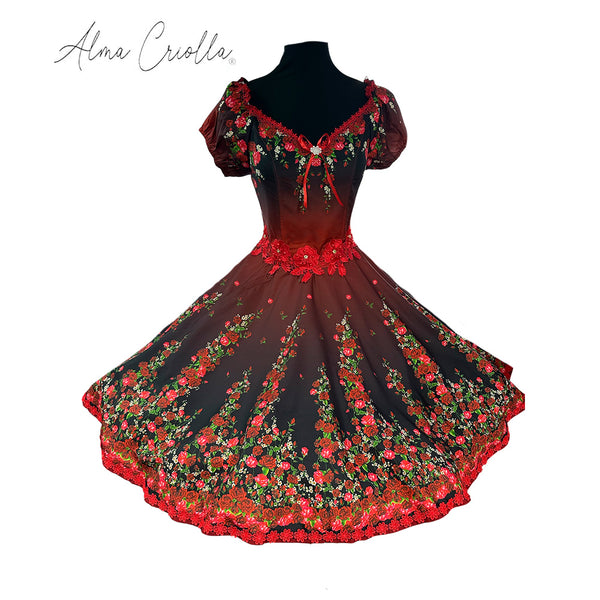Vestido de China huasa fantasia degrade macarame cristan redondo talla 40